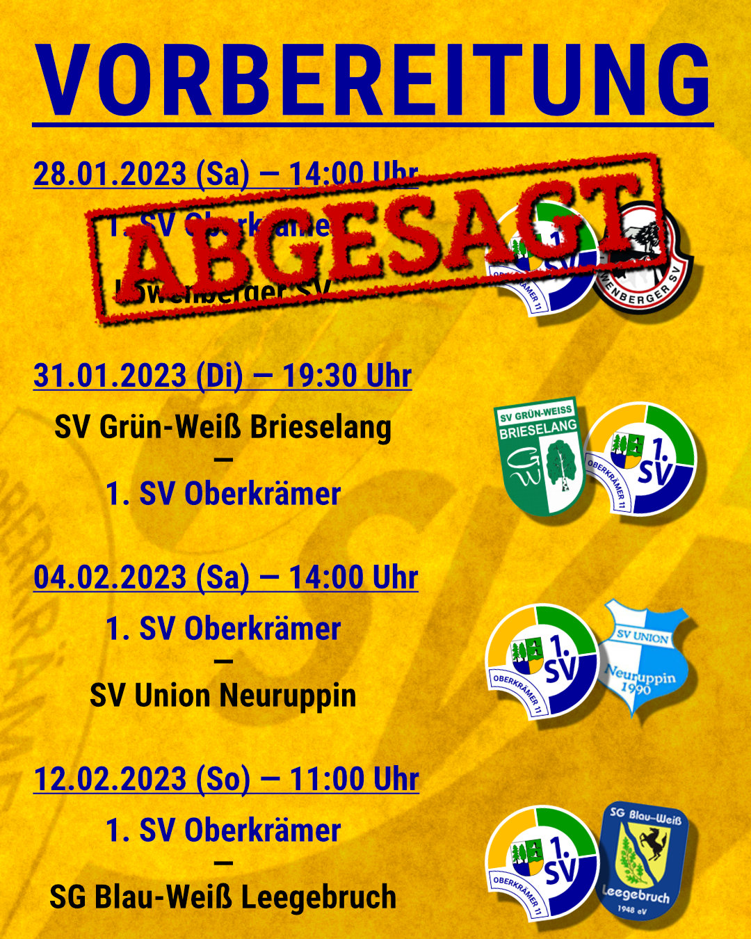 Das Testspiel der ersten Herren am 28.01.2023 findet nicht statt und wird ersatzlos gestrichen.