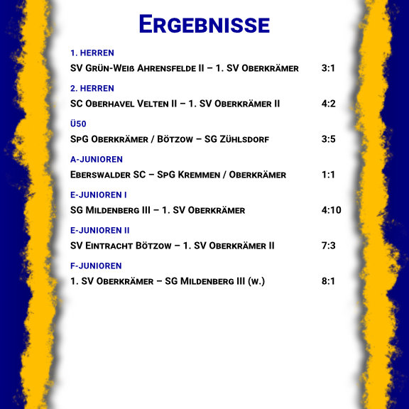 Die Ergebnisse unserer Fußballabteilung vom Wochenende.