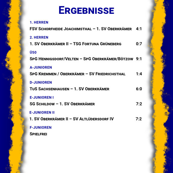 Die Ergebnisse unserer Fußballabteilung vom Wochenende.