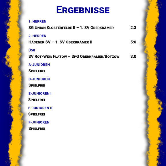 Die Pflichtspielergebnisse unserer Fußballabteilung vom Wochenende.