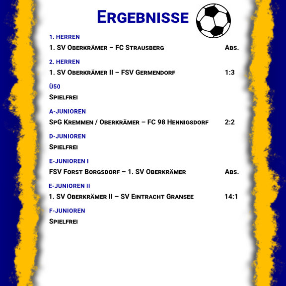 Die Pflichtspielergebnisse unserer Fußballabteilung vom Wochenende.