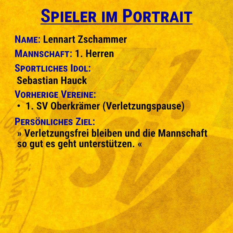 Die Neuzugänge stellen sich vor. Heute mit: Lennart Zschammer.
