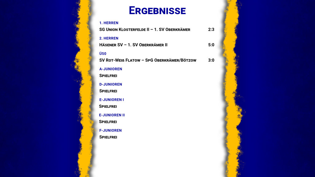 Die Ergebnisse unserer Fußballabteilung vom Wochenende.