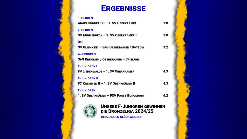 Die Ergebnisse unserer Fußballabteilung vom Wochenende.