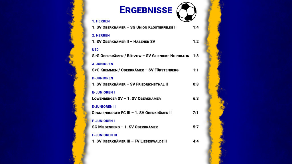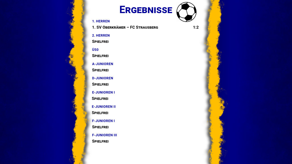 Die Pflichtspielergebnisse unserer Fußballabteilung vom Wochenende.