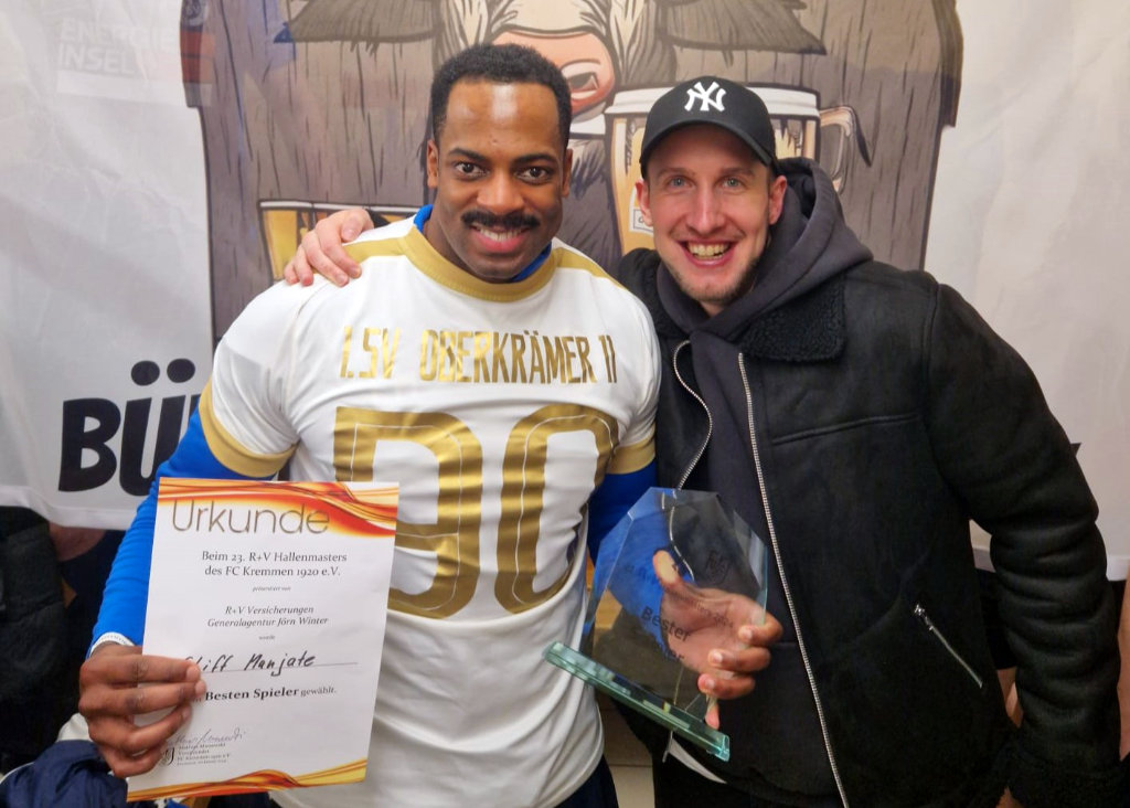 Am gestrigen Samstag sicherte sich die erste Herrenmannschaft des SVO beim "23. R+V Hallenmasters" in Kremmen den sehr guten vierten Platz bei acht hochkarätigen Mannschaften. Als Zweitplatzierter der Gruppe B qualifizierte man sich für die Finalrunden, wo man sich im Halbfinale dem Gastgeber aus Kremmen und späteren Turniersieger mit 4:1 schlagen geben musste. Im Spiel um Platz Drei gegen den SV Eintracht Alt Ruppin unterlag das Team dann mit 2:0. Neben dem vierten Platz, gewann der SVO mit Cliff Manjate sensationell die Wahl zum Spieler des Turniers. Herzlichen Glückwunsch.