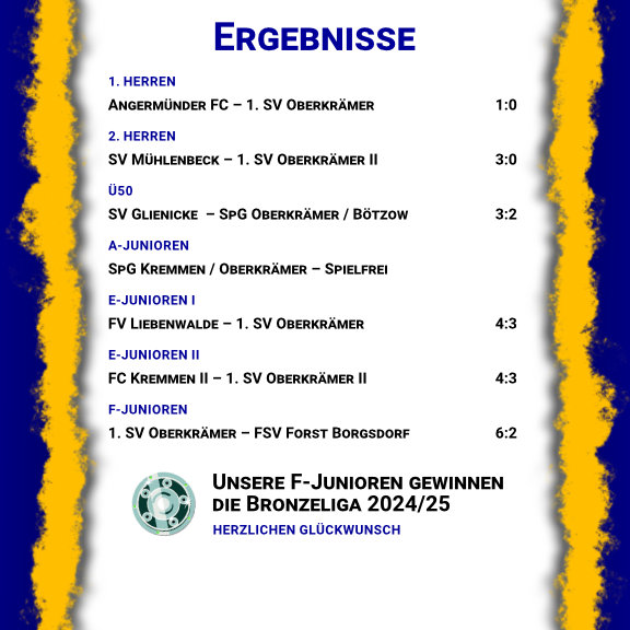 Die Ergebnisse unserer Fußballabteilung vom Wochenende.