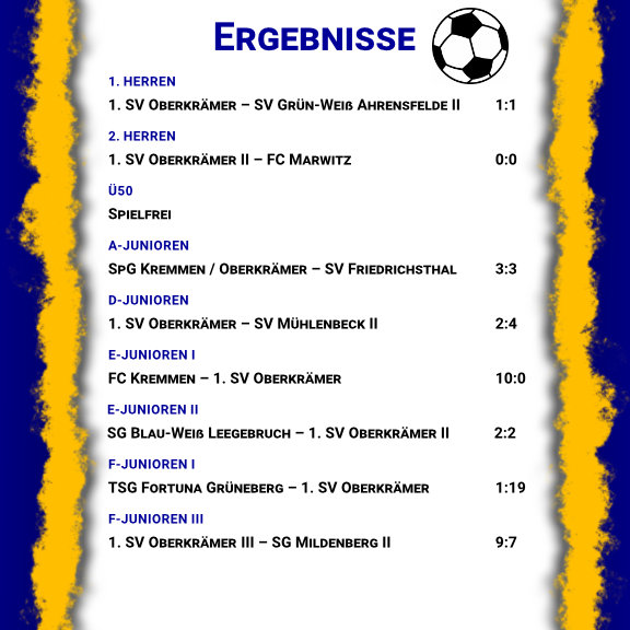 Die Pflichtspielergebnisse unserer Fußballabteilung vom Wochenende.
