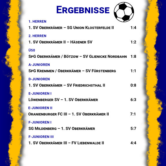 Die Pflichtspielergebnisse unserer Fußballabteilung vom Wochenende.