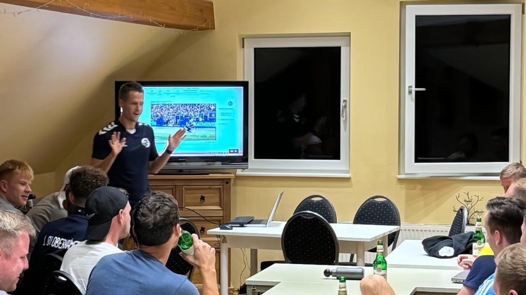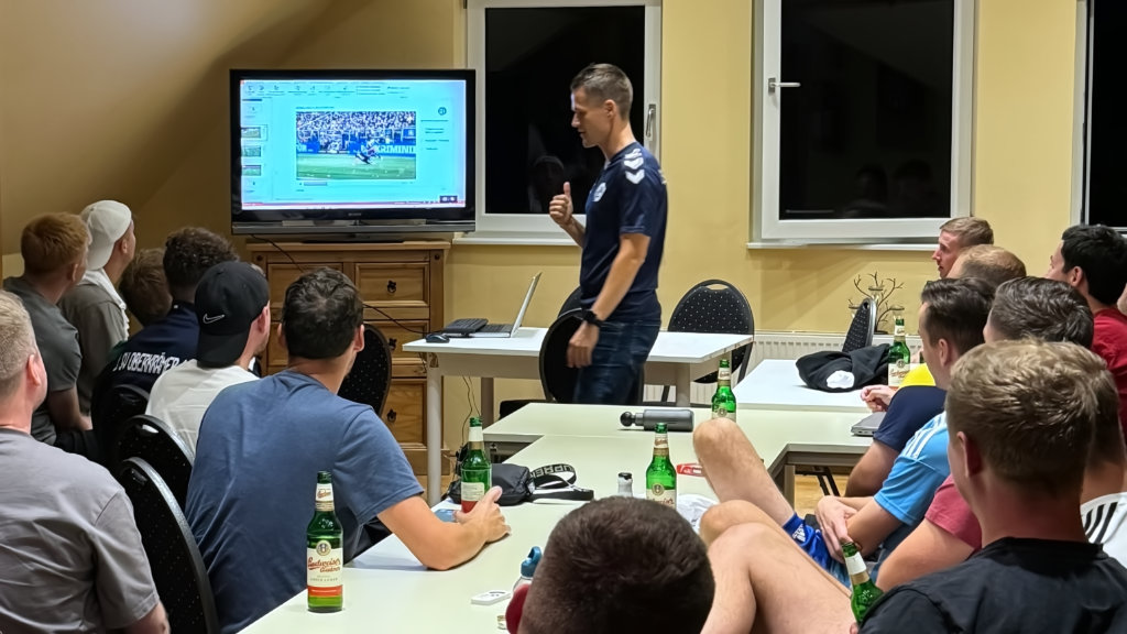 Angesichts neuer Regeln und Regelauslegungen für die Saison 2024/25 lud Jan Seidel am gestrigen Donnerstag zur gemeinsamen Regelkunde für unsere beiden Herrenmannschaften ein. Zu den Schulungsthemen zählten u.a. die Wertung und Bestrafung von Handspiel innerhalb des Strafraumes, die korrekte Ausführung eines Elfmeters, sowie die neu eingeführte Kapitäns-Regelung und das DFB-Stopp-Konzept.